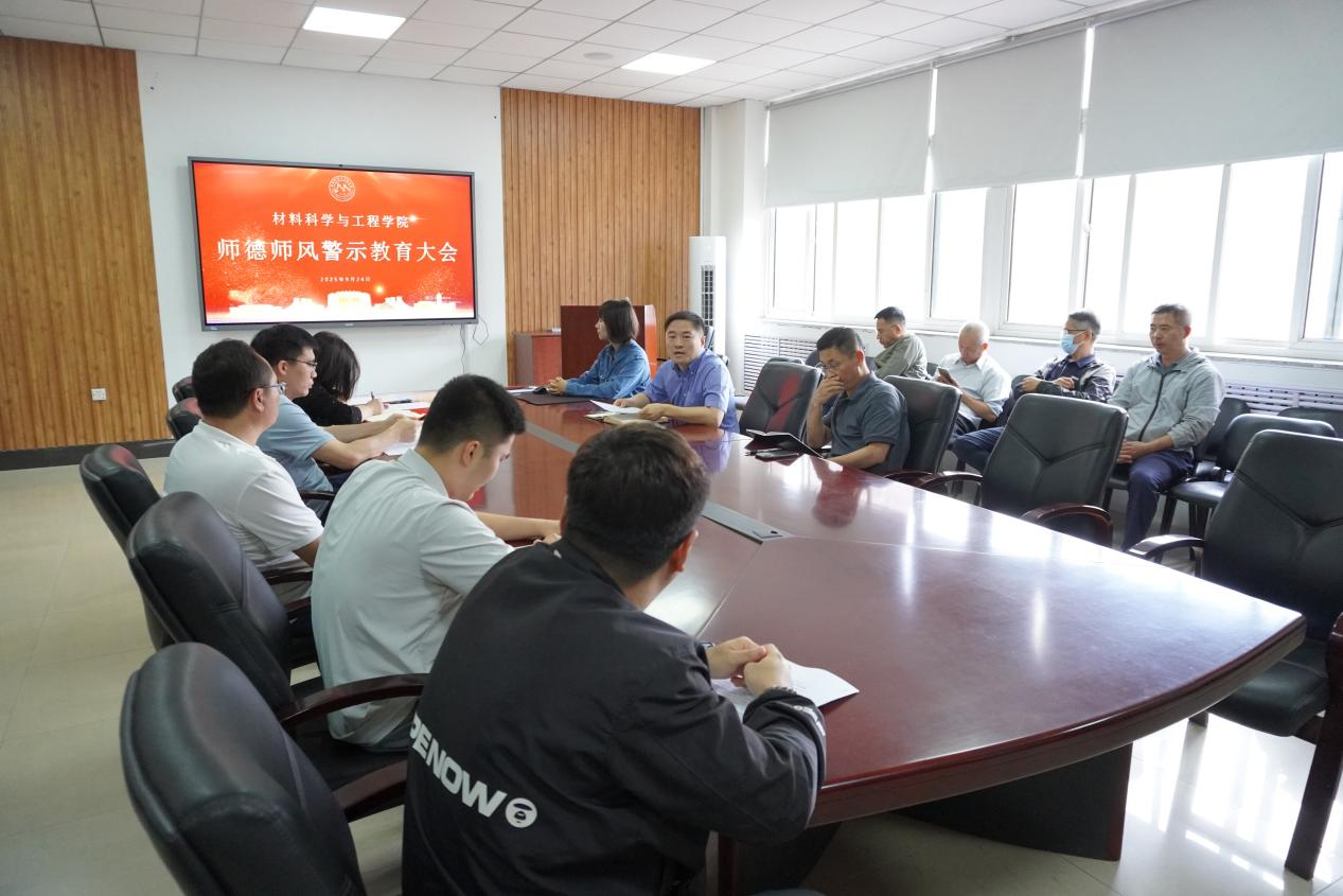 为进一步加强学院师德师风建设,贯彻落实法治宣传教育周活动要求,9月24日,材料科学与工程学院组织召开师德师风警示教育暨法治宣传教育大会。学院全体教职工参会,会议由党委书记路楠主持。