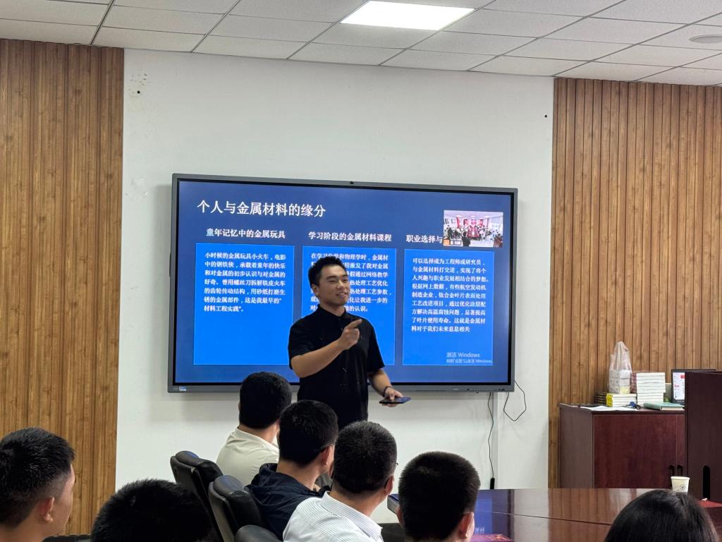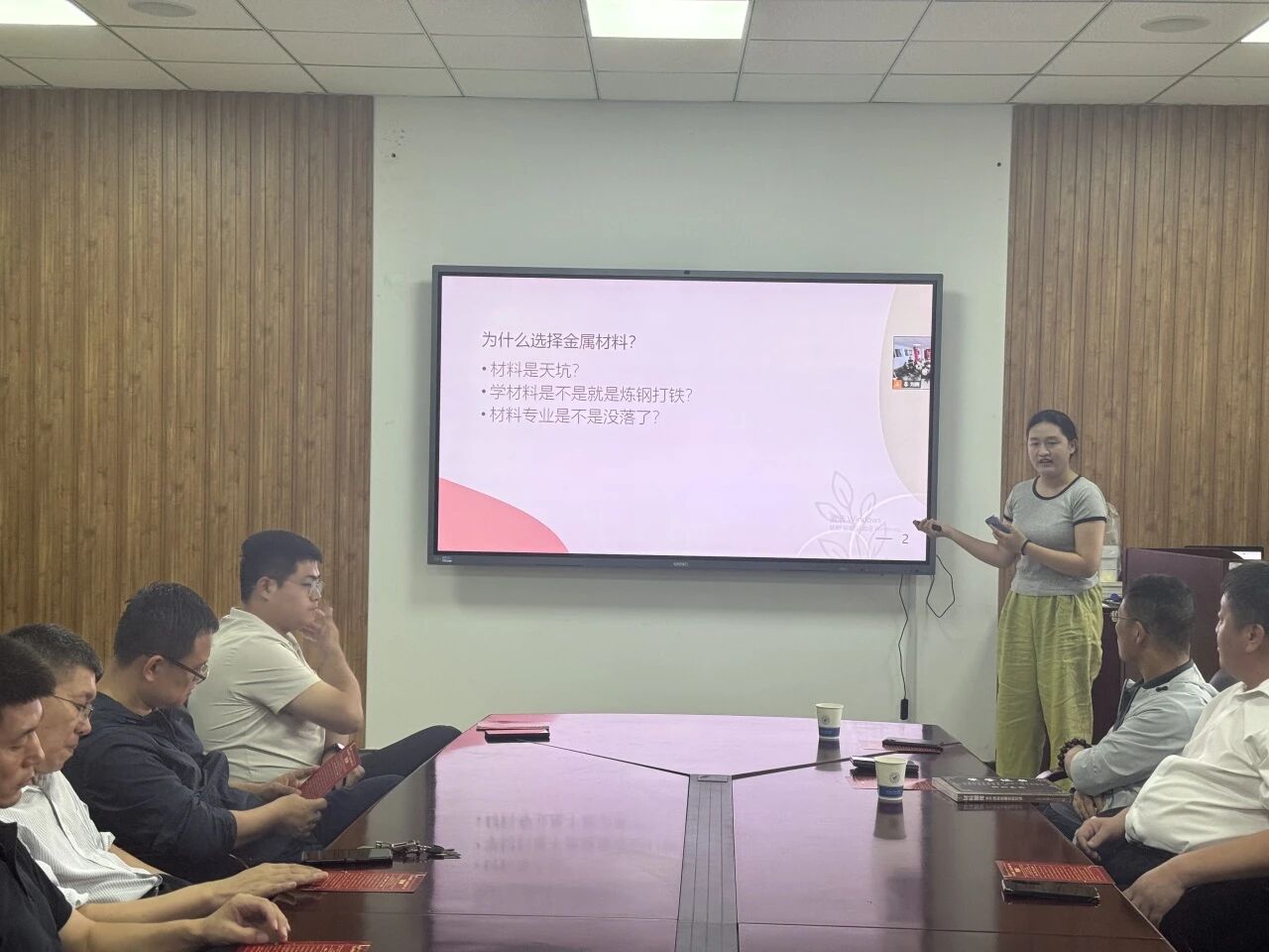 9月24日,材料科学与工程学院教工第一党支部在机械馆418会议室举行“迷人的金属”师生沙龙第五季第一期活动。学校党委常委、副校长曲迎东,校团委书记李江、学院院长卢少微、党委书记路楠、副院长农智升,金属材料工程专业部分教师和全体新生参加。沙龙由教工第一党支部书记刘腾策划筹备,支部宣传委员满田囡、金属2402班于云飞和金属2501班穆硕宇主持。